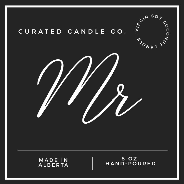 This candle label radiates sophistication and masculinity, capturing the essence of the modern groom with its refined scent and sleek aesthetic.