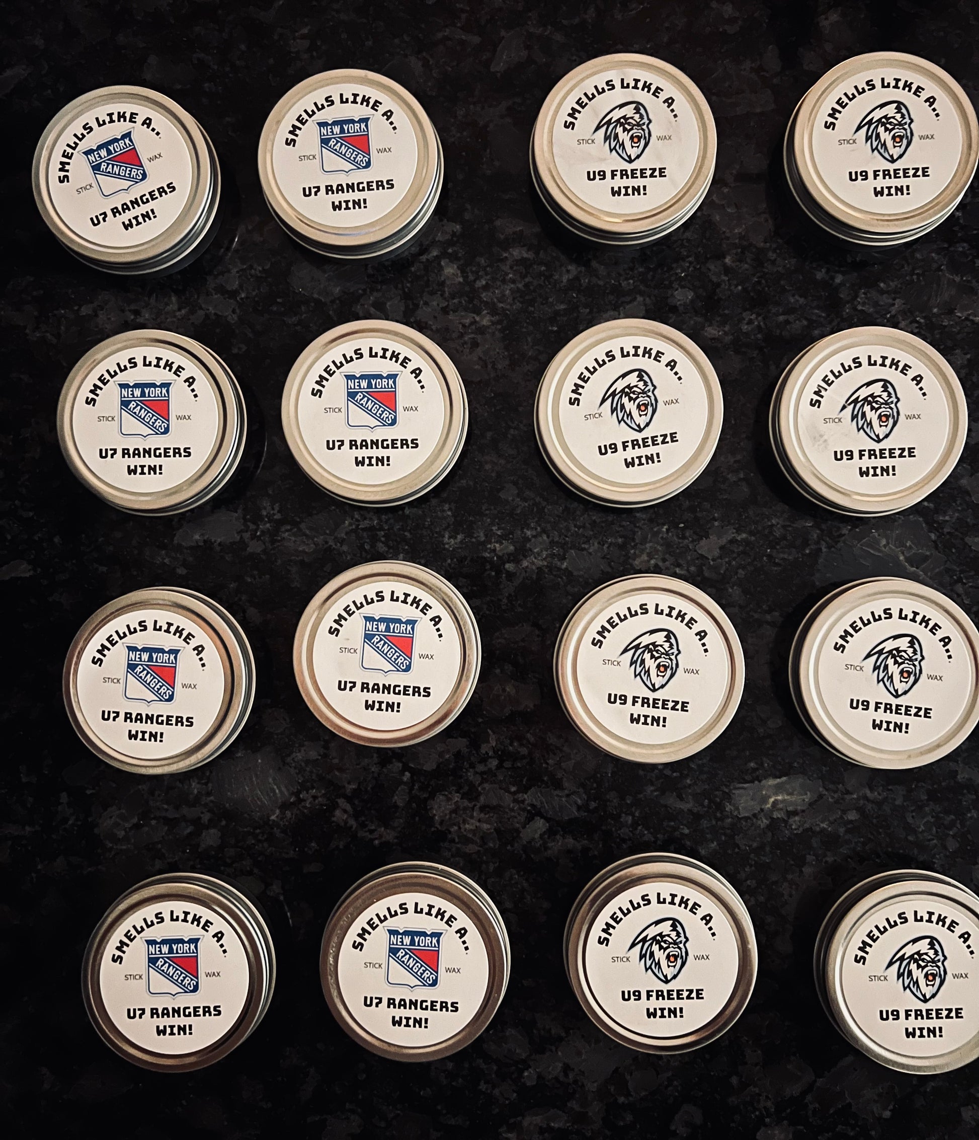 Perfect for hockey team gifts. Customizable by team and fragrance. Contact directly to personalize your order and quantities.